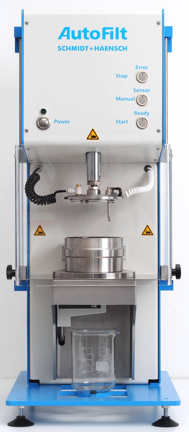 The new generation of AutoFilt Z by SCHMIDT + HAENSCH is even more user-friendly and guarantees an absolutely safe and stable analysis. The advanced sensor and processor-based system discards pre- and post-filtrate fractions and provides a high-quality filtrate. The first filtrate portion, which can contain suspended matter and particles, and the third filtration portion, which often contains foam that develops during the final filtration phase, are discarded. The result is a high-quality filtrate with constant sample volumes independent of the operator, sample viscosity, and turbidity.